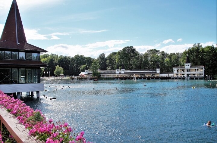 Das Heilbad besteht aus einem See unter freiem Himmel und dem Festetics-Badehaus, in dem Behandlungen und Wellness angeboten werden. Hévíz blickt auf eine zweitausendjährige Geschichte des Bäderwesens zurück, und schon die alten Römer erwähnten den See, in dem römische Münzen gefunden wurden. In den 1770er Jahren baute die Familie Festetics das erste Badehaus auf Flößen.