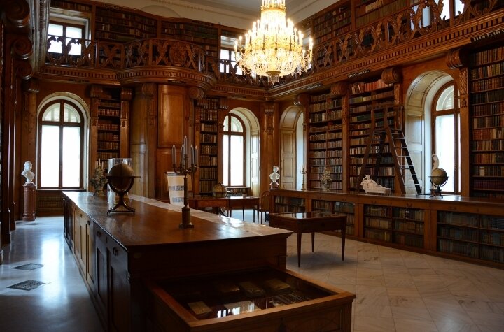 Die rund 80.000 Bände umfassende Sammlung der Helikon-Bibliothek wurde von der Familie Festetics angelegt. Zu den Büchern gehören mehrere alte Enzyklopädien und alte Drucke. Sie ist die größte erhaltene Adelsbibliothek in Europa. Die geschnitzten Eichenmöbel in dem bemerkenswerten großen Saal der Bibliothek wurden von dem Keszthelyer Tischler János Kerbl angefertigt.